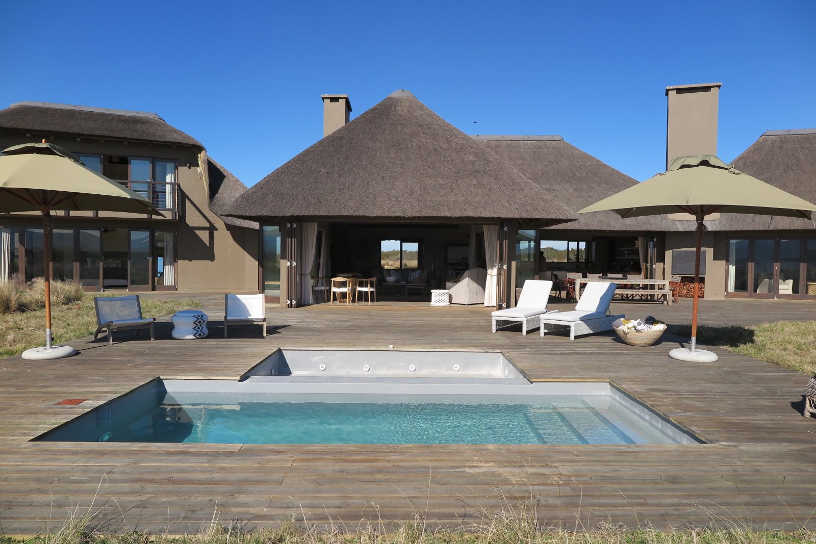 Several hectares of unspoilt nature on the South African plain. Relax on a terrace, go on a photo safari with antelopes, zebras and other bush dwellers.